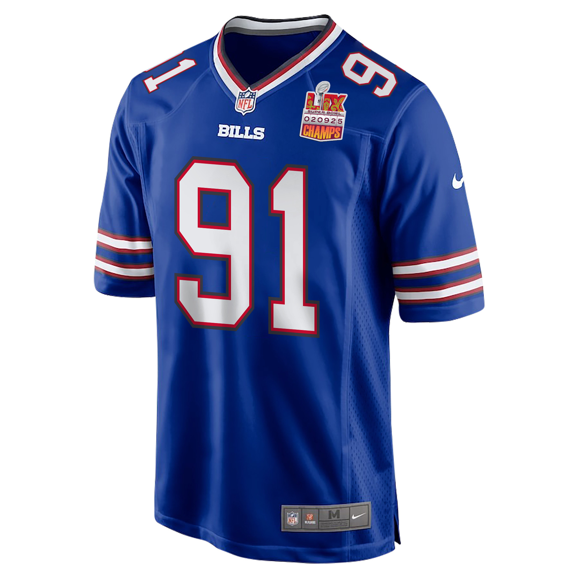 Express your passion and individuality with a Custom Ed Oliver 91 Buffalo Bills Super Bowl LIX Champions Patch Game Men Jersey – Royal JS8327 from Saliibo. Perfect for sports fans and gift-givers alike, this jersey combines style, comfort, and personalization, making it ideal for daily wear, sports events, or special occasions. Each jersey is made with premium, breathable, and durable fabric to ensure long-lasting comfort and a great look all day.