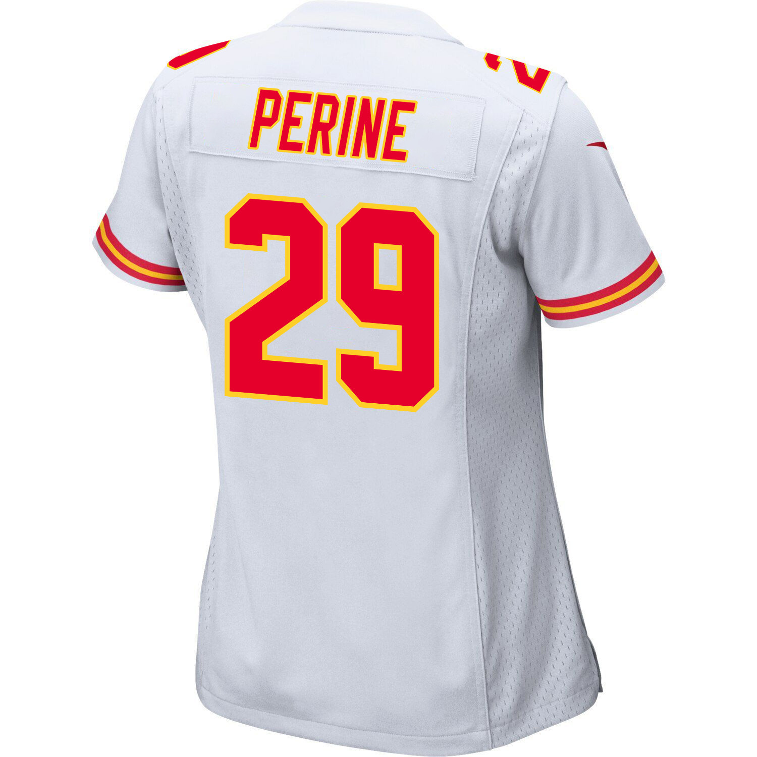 Express your passion and individuality with a Custom La’Mical Perine 29 Kansas City Chiefs Super Bowl LVIII Champions 4 Stars Patch Game Women Jersey – White JS5583 from Saliibo. Perfect for sports fans and gift-givers alike, this jersey combines style, comfort, and personalization, making it ideal for daily wear, sports events, or special occasions. Each jersey is made with premium, breathable, and durable fabric to ensure long-lasting comfort and a great look all day.