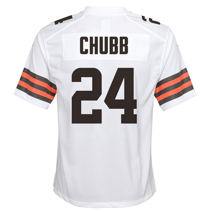 Custom Nick Chubb 24 Cleveland Browns YOUTH Game Jersey – White JS1380 – Unique Gift from Saliibo