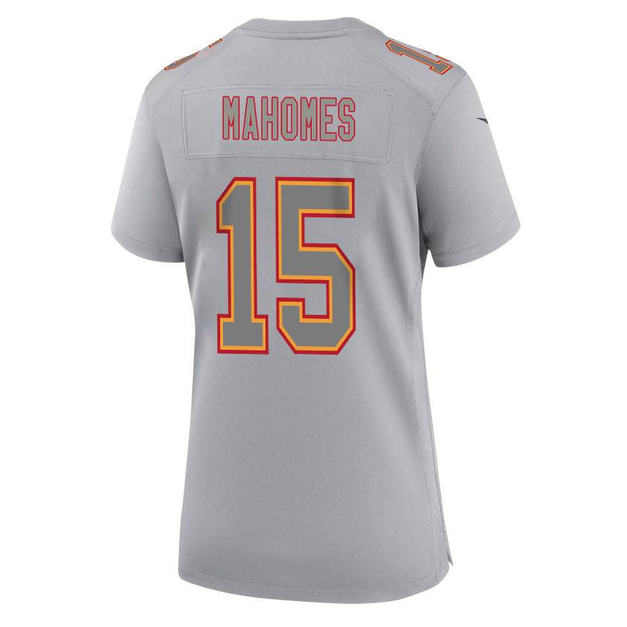 Patrick Mahomes 15 Kansas City Chiefs Super Bowl LVIII Champions 4 Stars Patch Atmosphere Fashion Game Women Jersey – Gray JS8505 Saliibo