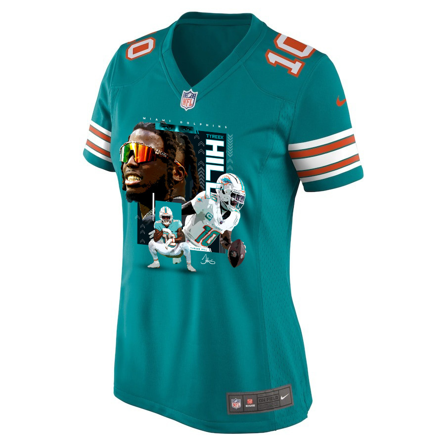 Tyreek Hill 10 Miami Dolphins Run Cheetah Run Women Alternate Game Jersey – Aqua JS1922 Saliibo