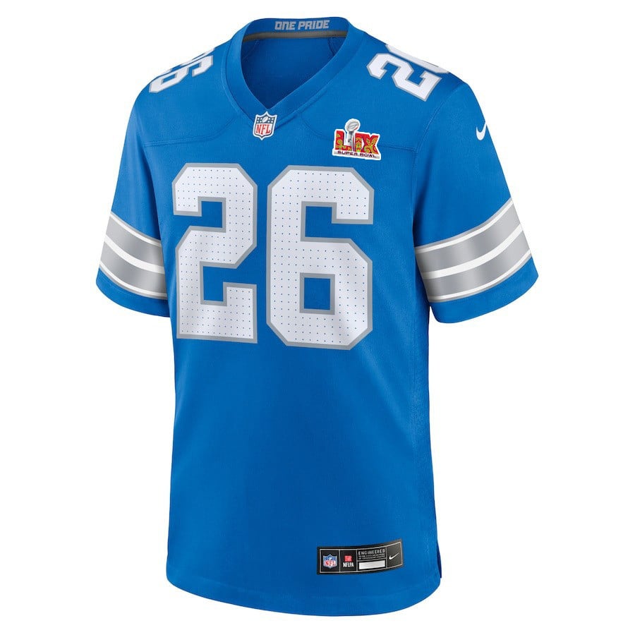 Jahmyr Gibbs #26 Detroit Lions Super Bowl LIX Women’s Jersey – Blue JS6344 Saliibo